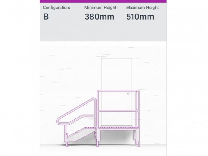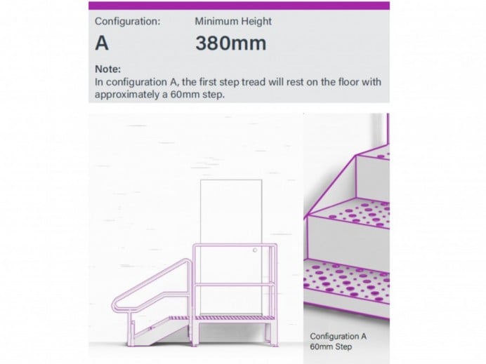 Available in heights from 380-850 mm, the steps feature a slip-resistant, self-draining surface that helps prevent water buildup and reduces the risk of slips or freezing.
