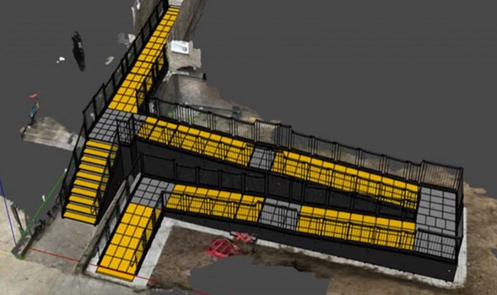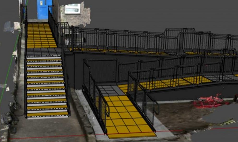Our design team then overlaid a 3D drawing of the ramp onto the RapidScan model, carefully planning around any obstacles.