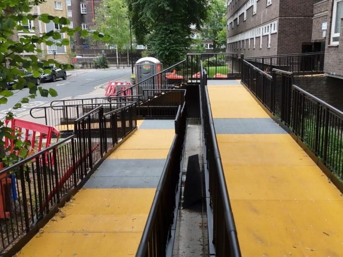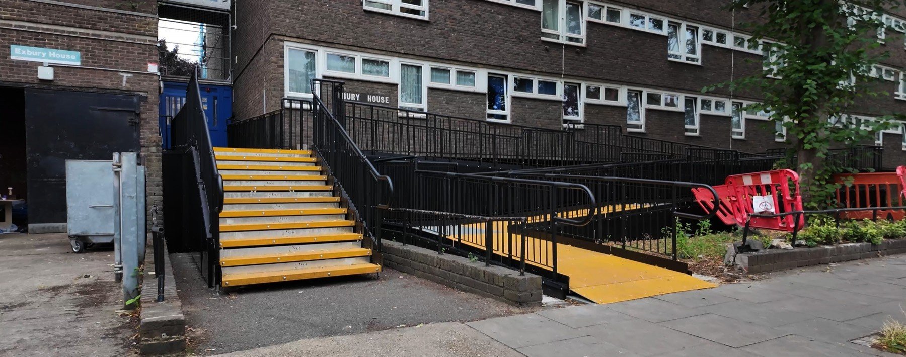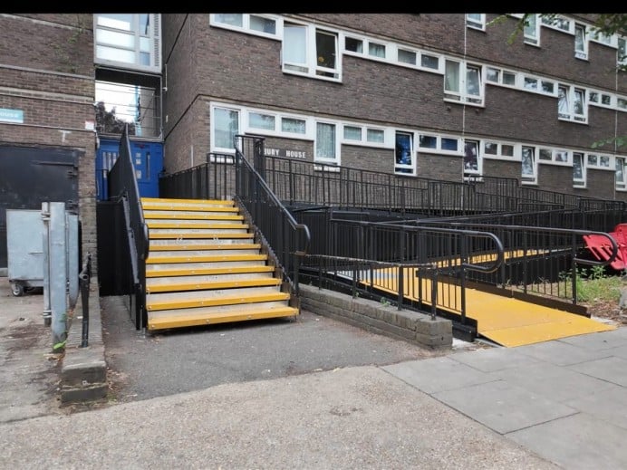 Hackney Housing identified a need to improve accessibility to the building, the existing ramp was wooden and did not meet the latest compliance standards, limiting safe access for residents with mobility challenges.