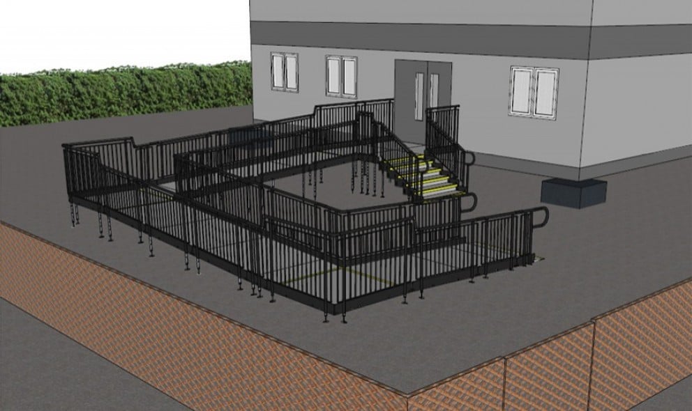A rental ramp and two sets of step units were installed. These will be on hire until works on the permanent main building is finished.
