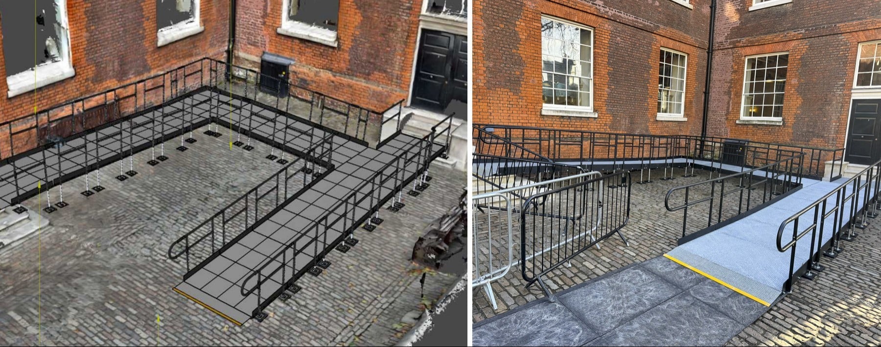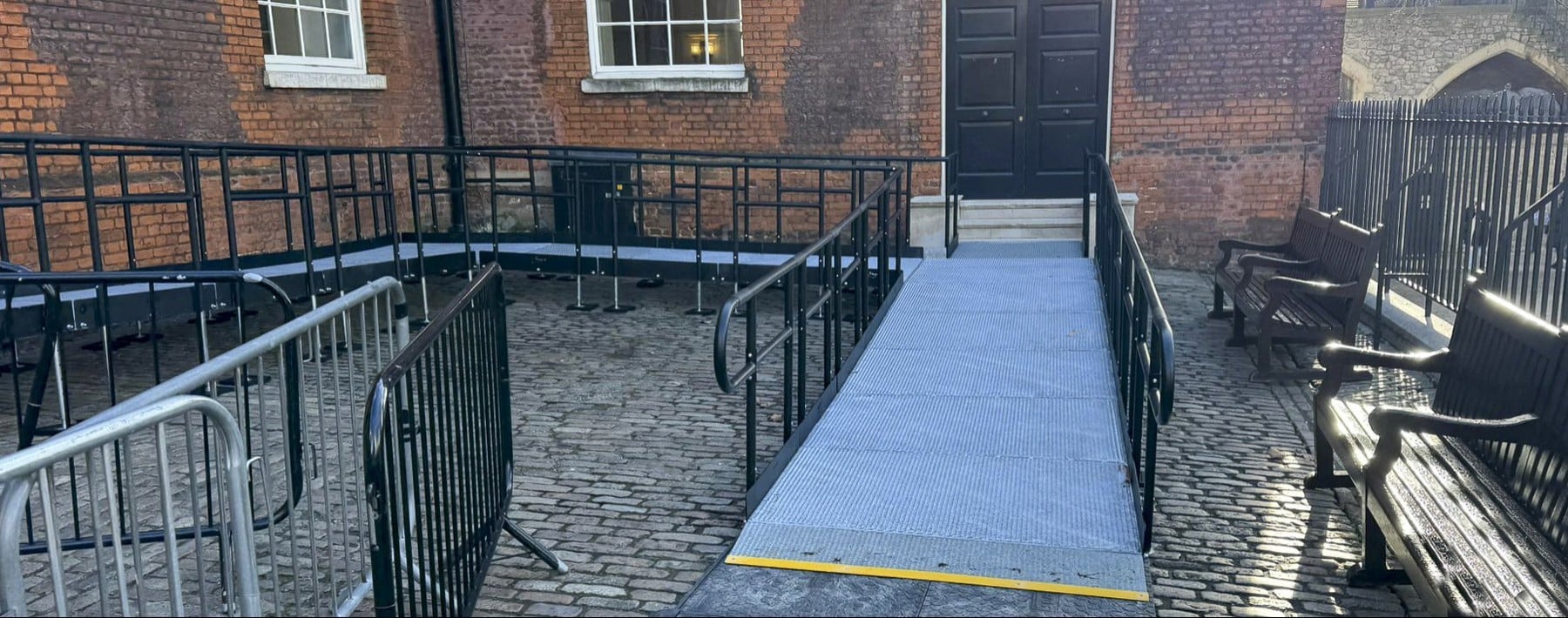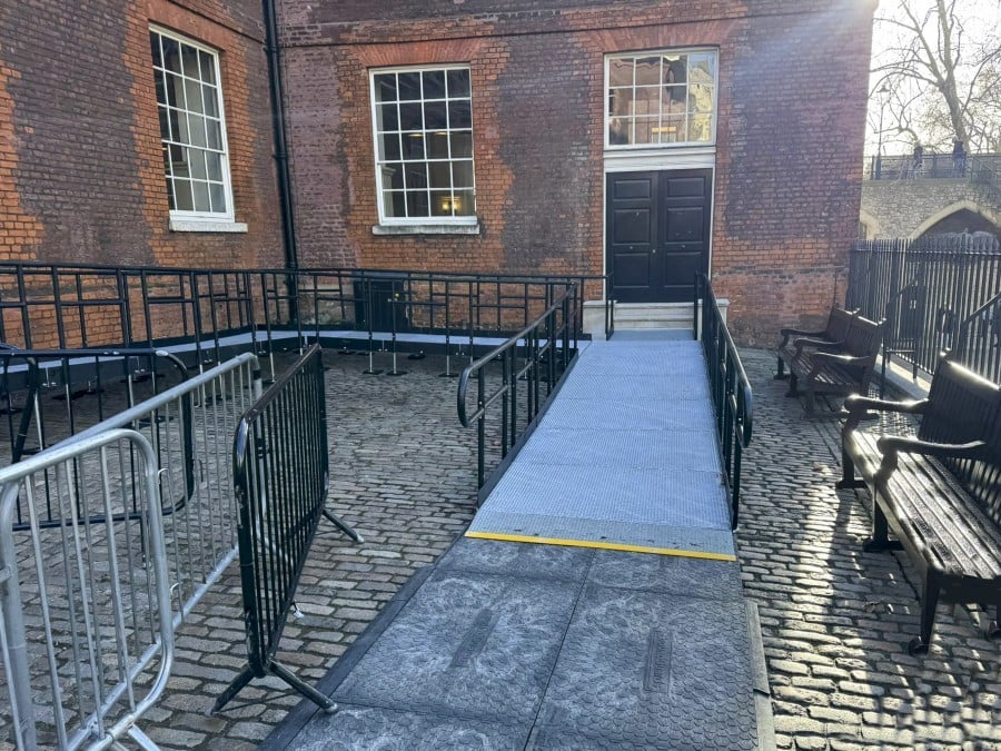 Historic Royal Palaces approached us with a clear and time-sensitive requirement of a temporary ramp solution to enable safe wheelchair access to the café via an alternative entrance. This was required while works were carried out at the main access point.