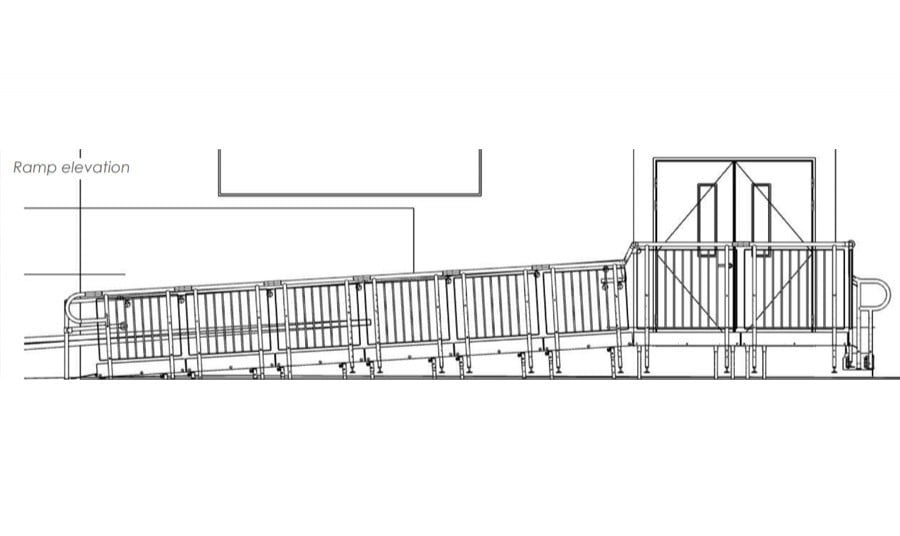 The original design proposed a concrete ramp, but this would have obstructed essential vehicle access and would have been costly and time-consuming to remove once no longer needed. As a result, a modular steel ramp system was selected as a more practical alternative.